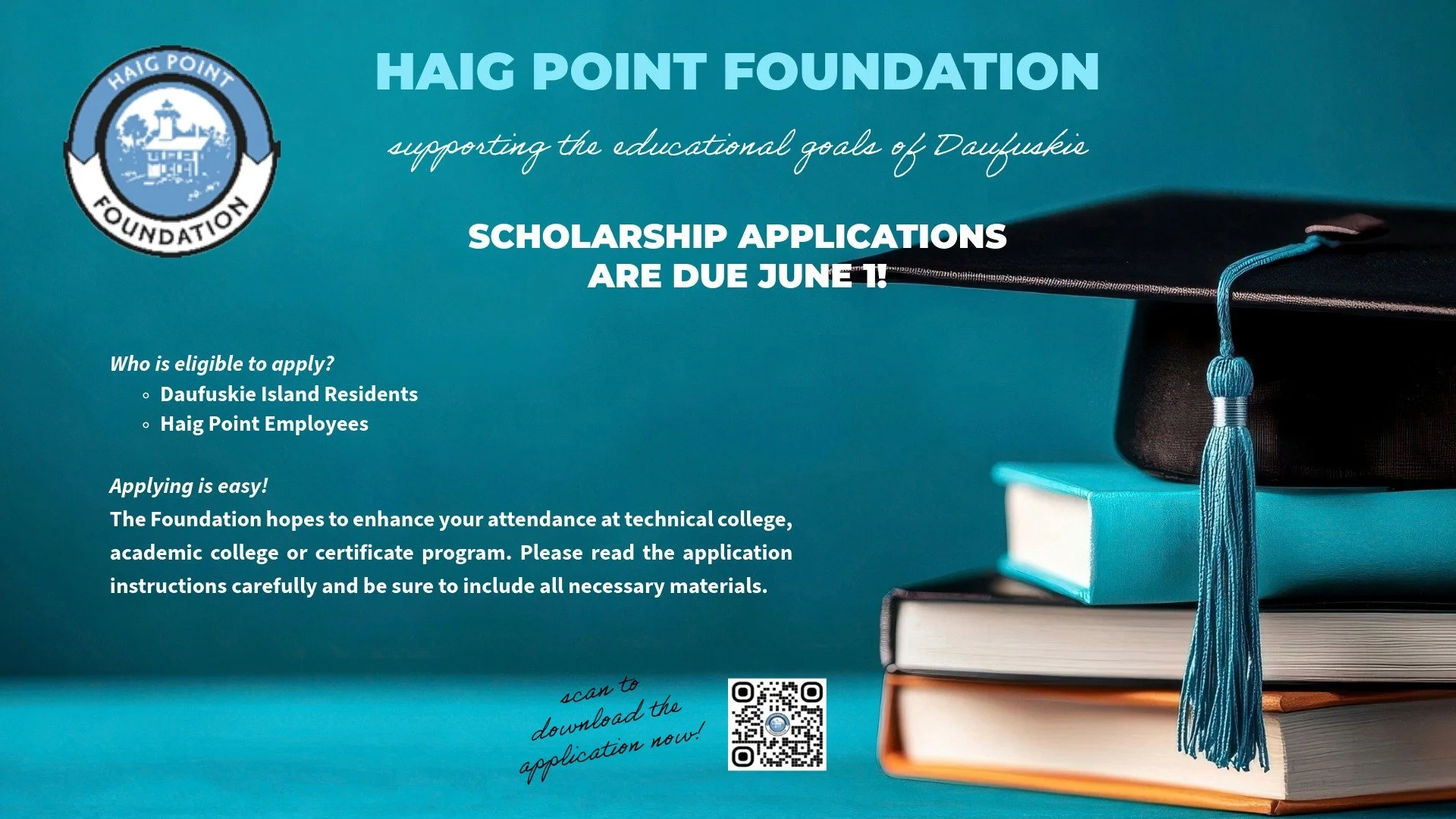 The Daufuskie Island Scholarship is for residents of the Daufuskie Island Community and Haig Point employees. The Foundation is hoping to enhance your attendance at technical college, academic college or certificate programs. Please read the following instructions to maximize your opportunity to qualify for the scholarship.